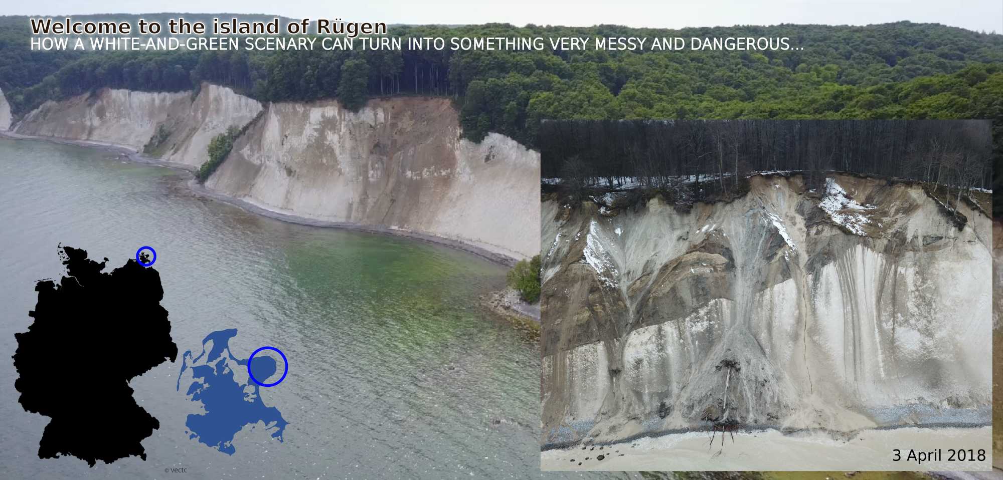 Cliff coasts appear stable interfaces between the land we live on and the sea that hits it continuously. However, cliff coasts are highly dynamics landscape elements. They can fail catastrophically, yet the "Where?", "When?" and "Why?" is hard to constrain with classic approaches. In this project, the cliff coast section of Germany's largest island, Rügen, has been instrumented by a set of seismic sensors and a weather station, from March 2017 to March 2018. The data collection phase is now over and the analysis will start.