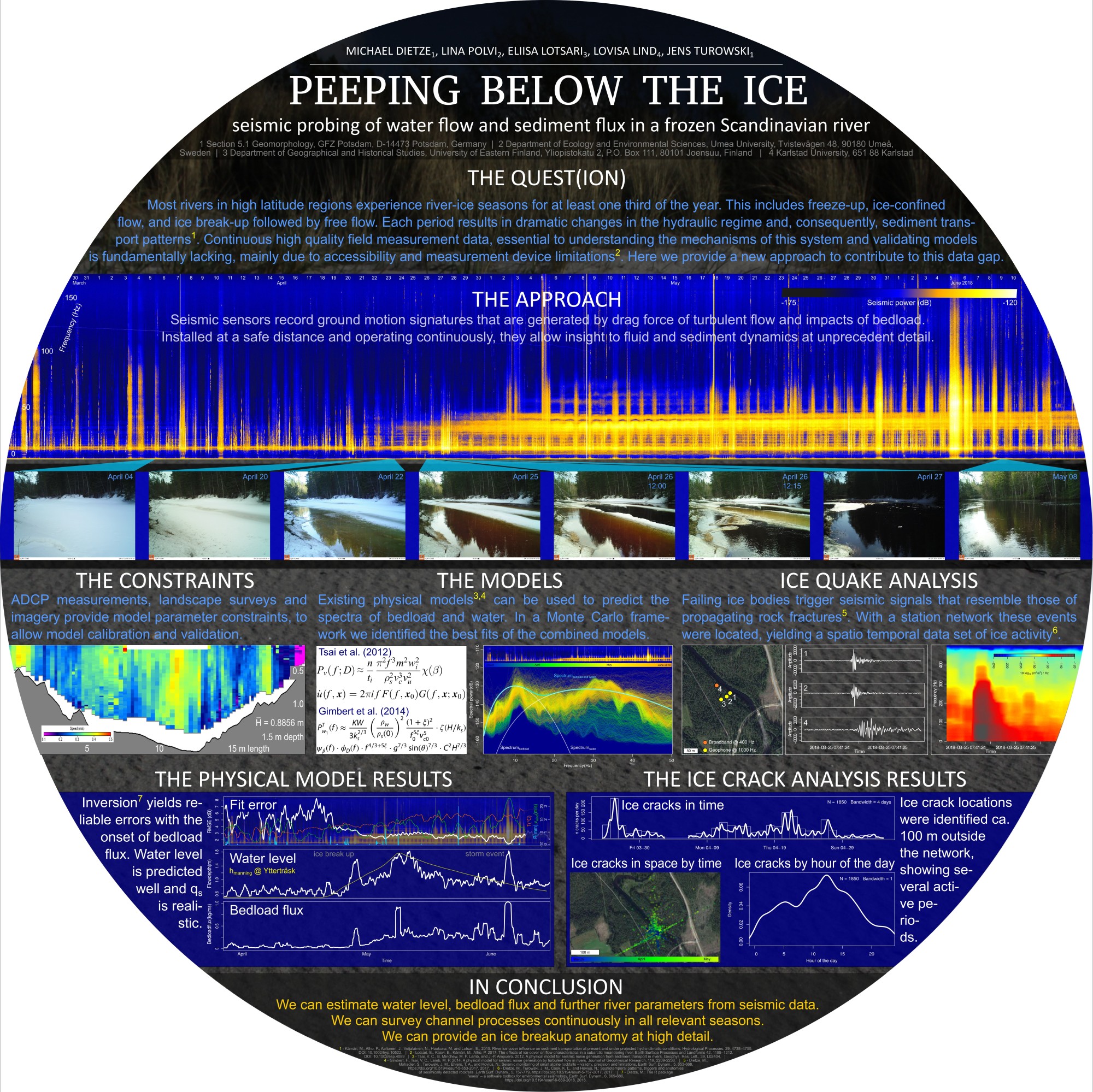 In northern Sweden, in the Icy River Project (near Umea) we have studied the seismic signals of flowing water and mobile sediment under a thick ice cover to provide information on these two important parameters where other methods can hardly be applied.